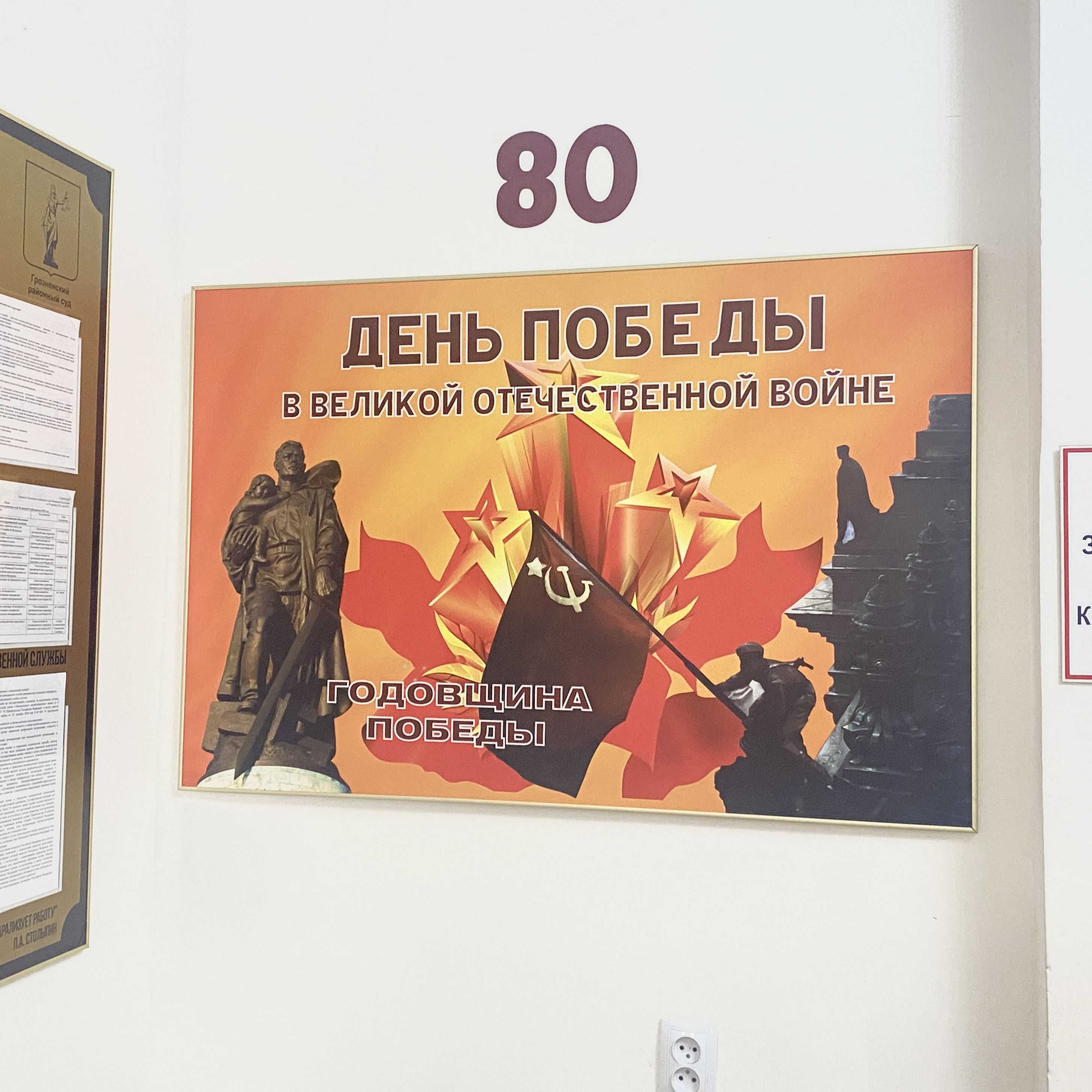Дорогие ветераны! Уважаемые сограждане! В 2025 году, 9 мая мы с глубоким почтением и благодарностью отмечаем знаменательную дату —80-летие Великой Победы в Великой Отечественной войне 1941–1945 годов. Этот день — символ несокрушимой силы духа, героизма и единства нашего народа. Мы склоняем головы перед подвигом тех, кто отстоял свободу и независимость Родины, кто вынес на своих плечах тяжелейшие испытания войны, кто восстанавливал страну из руин. Память о Великой Победе — священна.Она живёт в наших сердцах, в семьях, в каждом городе и селе, в каждом ветеране и потомке героев. Мы обязаны передать эту память будущим поколениям, чтобы подвиг наших предков никогда не был забыт. От всей души желаем вам мира, здоровья, благополучия и уверенности в завтрашнем дне. Пусть мужество и самоотверженность Победителей навсегда останутся примером истинного патриотизма и любви к Родине. Во исполнение Указа Президента Российской Федерации от 31.07.2023 № 568 «О подготовке и проведении празднования 80-й годовщины Победы в Великой Отечественной войне 1941-1945 годов», распоряжения Правительства Российской Федерации 17.05.2024 Nº 1174-р, в здании суда организовано размещение информационных стендов, посвящённых этой знаменательной дате. Экспозиция отражает ключевые этапы Великой Отечественной войны, героизм военных, вклад тыла и фронта в достижение Великой Победы. На стендах представлены архивные фотографии, исторические справки, сведения о подвигах земляков, а также материалы, напоминающие о значении Победы для нашей страны и мира в целом. Цель размещения стендов — сохранение исторической памяти, формирование у граждан уважения к подвигу поколений Победителей и патриотическое воспитание молодёжи.
